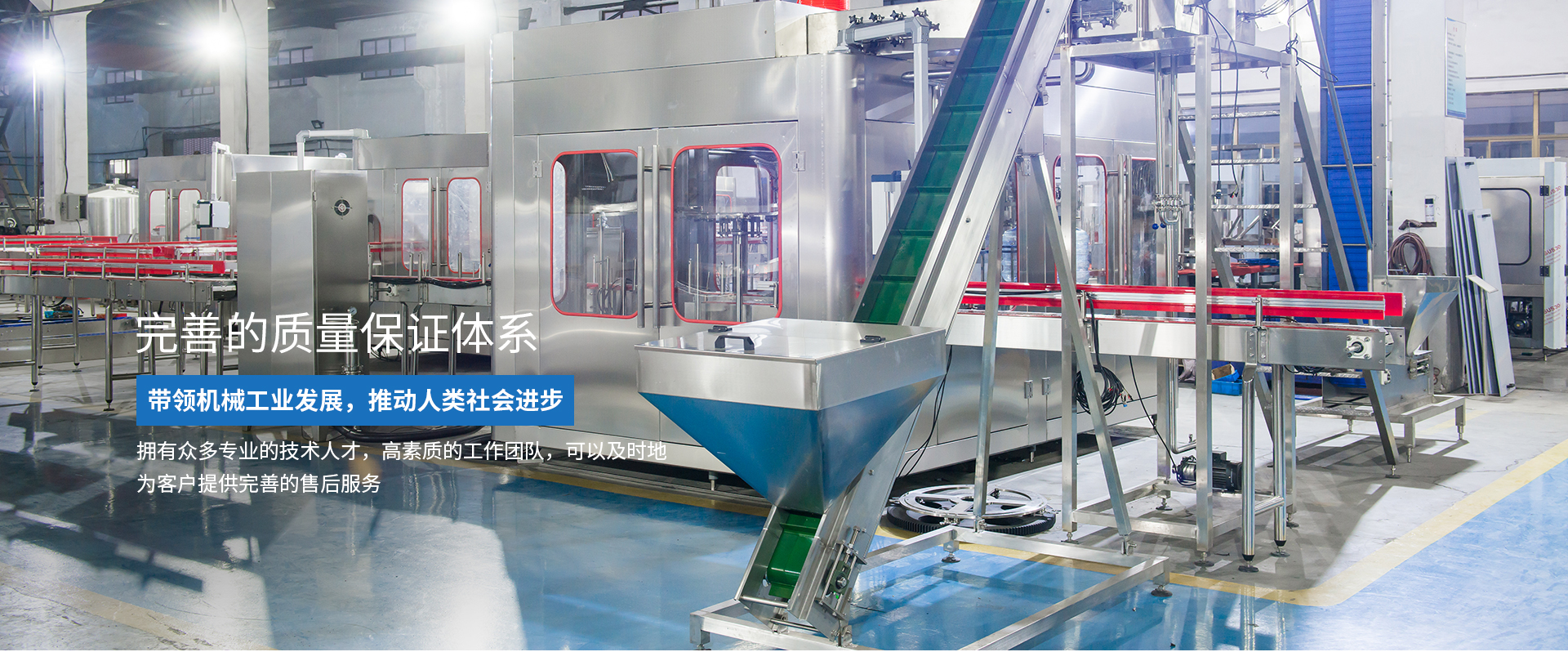 公司主導產品有水處理設備,3L-18L大瓶水灌裝機設備, 水灌裝生產線,含氣飲料灌裝生產線, 果汁茶飲料灌裝生產線, 啤酒灌裝生產線,5加侖灌裝生產線等。能夠配套整個生產線